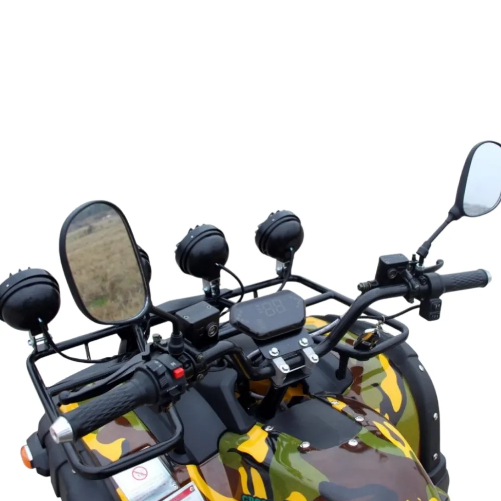 На квадроцикл GreenCamel Caxapa A4000 устанавливается сигнализация для лучшей безопасности. LED спидометр, с которым ваш ребенок сможет контролировать скорость на грунтовых дорогах и не преувеличить с ручкой подачи газа. Багажник спереди и сзади, на который можно положить вещи, трос, лебедки для большей уверенности в лесных тропах. Квадроцикл оборудован фаркопом.