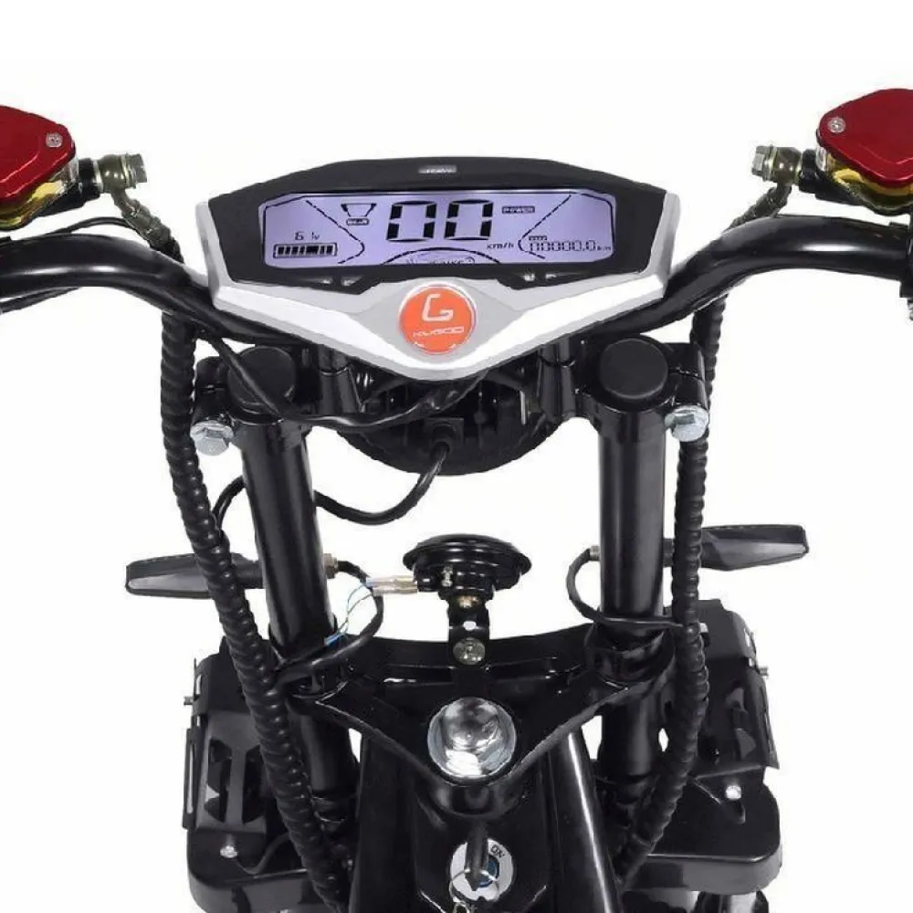 Электроскутер Citycoco Kugoo C6 – обновленный вариант бренда занимает лидирующие позиции в продажах. Брутальный кричащий дизайн заинтересовал райдеров-экстремалов и любителей рыбалки. Широкая отлично сцепляемые шины обещают отличную проходимость и отсутствие проблем в дороге. Техника создана для езды по бездорожью, не разочарует при преодолении небольших препятствий и путешествии по лесным тропинкам.