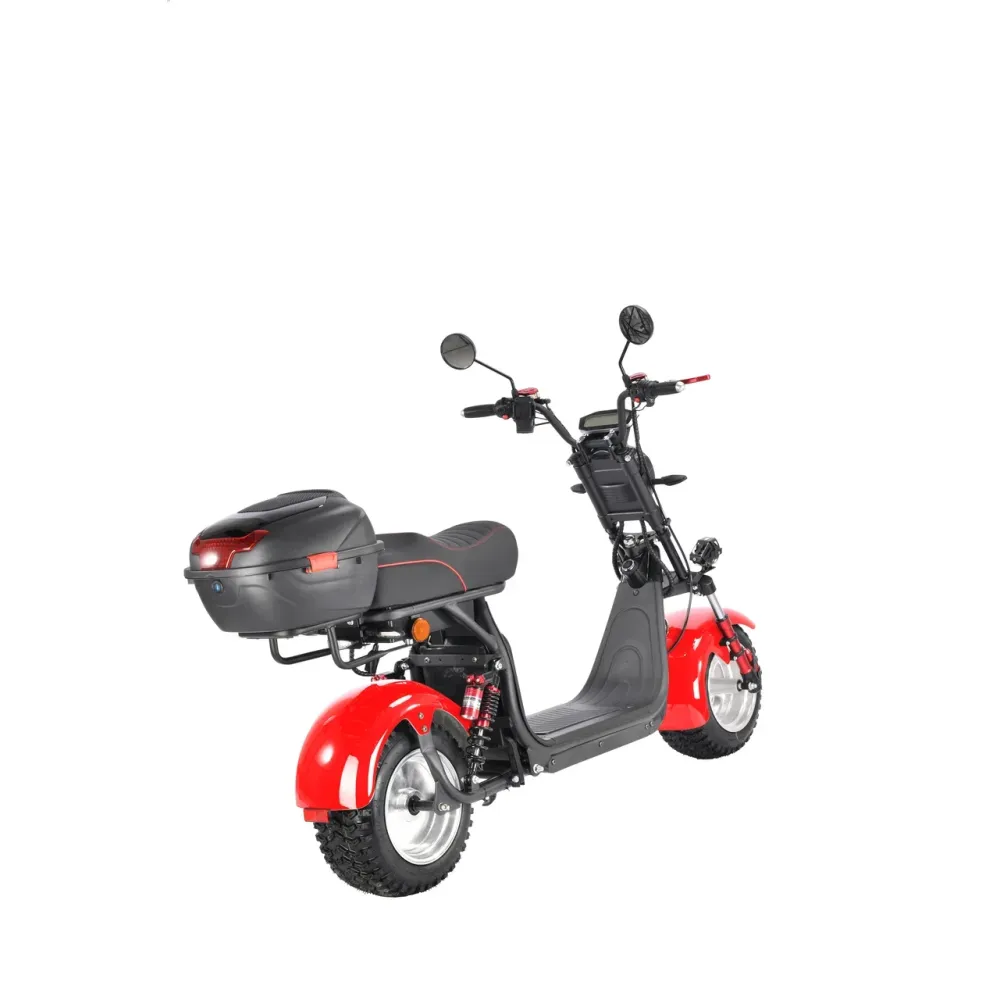 Электроскутер CityCoco WS-Pro+ 2500W – произведенная в красных цветовых оттенках техника способна доказать совершенство езды на практике. Пневматические агрессивные колеса, по внешнему виду напоминающие шины внедорожника созданы для езды по городской местности и бездорожью. Убедиться в технических характеристиках можно прямо сейчас. Предлагаем сделать заказ и купить электроскутер в нашем интернет-магазине.