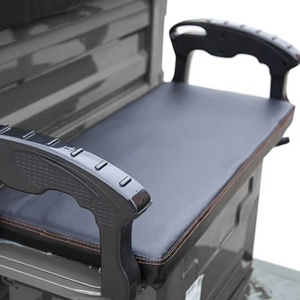 Элетротрицикл рассчитан на водителя с пассажиром, оснащен мягким сиденьем, повторяющим анатомические части тела, снимающую усталость при длительной дороге. Вместительный кузов представлен размерами 1800 x 1250 x 475 мм (Д х Ш х В), имеет откидные борты, что удобно для сельских жителей, транспортирующих сено с полей.