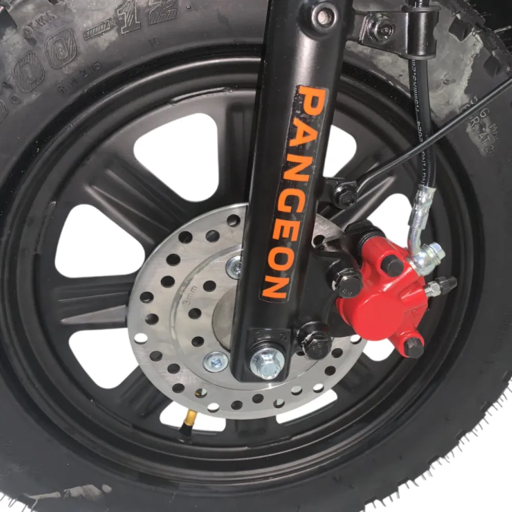 Pangeon Monster PRO оснащён передними амортизаторами, что делает поездку мягкой даже по неровной дороге. Колёса R16FAT с всесезонными шинами 16 × 3.0 обеспечивают отличное сцепление с дорогой в любую погоду. Гидравлические дисковые тормоза спереди и сзади гарантируют безопасное и плавное торможение.