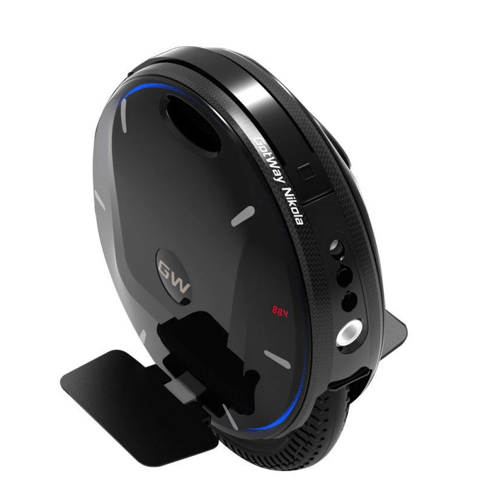 GotWay Nikola Plus имеет ручку для транспортировки, которая оснащена система выключения мотора при ее поднятии. Эта ручка позволяет не только переносить колесо в руках, но и везти его подобно чемодан на колесах.