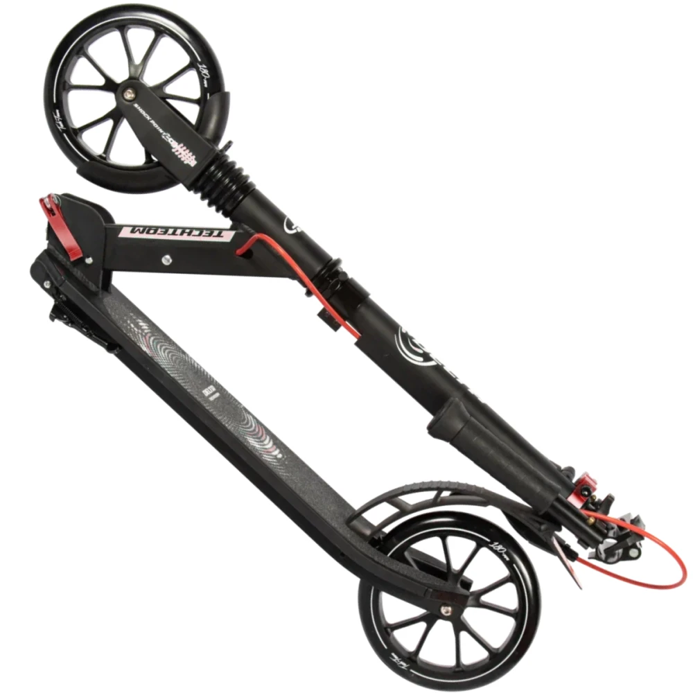 Удобная рулевая часть регулируется в трёх положениях - 750-820-890 мм, имеет широкий зажим, благодаря которому исключается люфт, являющийся главным источником посторонних шумов. Колесная часть – полиуретановая, мало стираемая, размерами 180 мм с подшипниками ABEC 7 Chrome. В сочетании с брендовой тормозной системой гарантирует безопасность, своевременность остановки и массу приятных впечатлений.