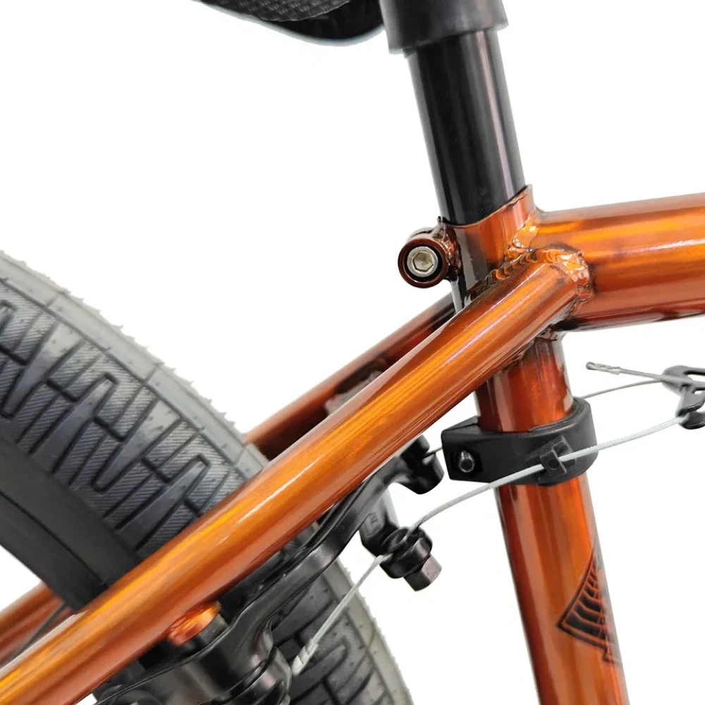 Велосипед Tech Team BMX Millennium 20х20,4 оранжевый 2024 года — это идеальный выбор для тех, кто стремится к новым высотам в BMX. Рама из стали обеспечивает прочность и долговечность, а задний алюминиевый тормоз U-типа гарантирует надежное торможение. Стальная вилка с конусными ногами и баттированным штоком под топ кэп обеспечивает отличную управляемость. Интегрированная рулевая Neco на промышленных подшипниках и стальной руль длиной 740 мм с высотой 9,5" и загибом 12° обеспечивают комфорт и контроль. Тканевое седло с подседельным штырем 25,4 мм и широкие пластиковые педали добавляют удобства. Система Kenli Mid с промподшипниками и 3-компонентными шатунами Cr-Mo 175 мм завершает этот великолепный велосипед. Габариты рамы 20,4" делают его идеальным для трюков и экстремального катания.